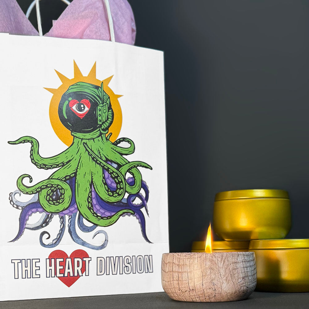 The Heart Division is a locally owned and operated candle and art brand, located in Eureka Springs, Arkansas. Featuring visionary original art and prints by Christopher Box, locally made hand-poured candles.