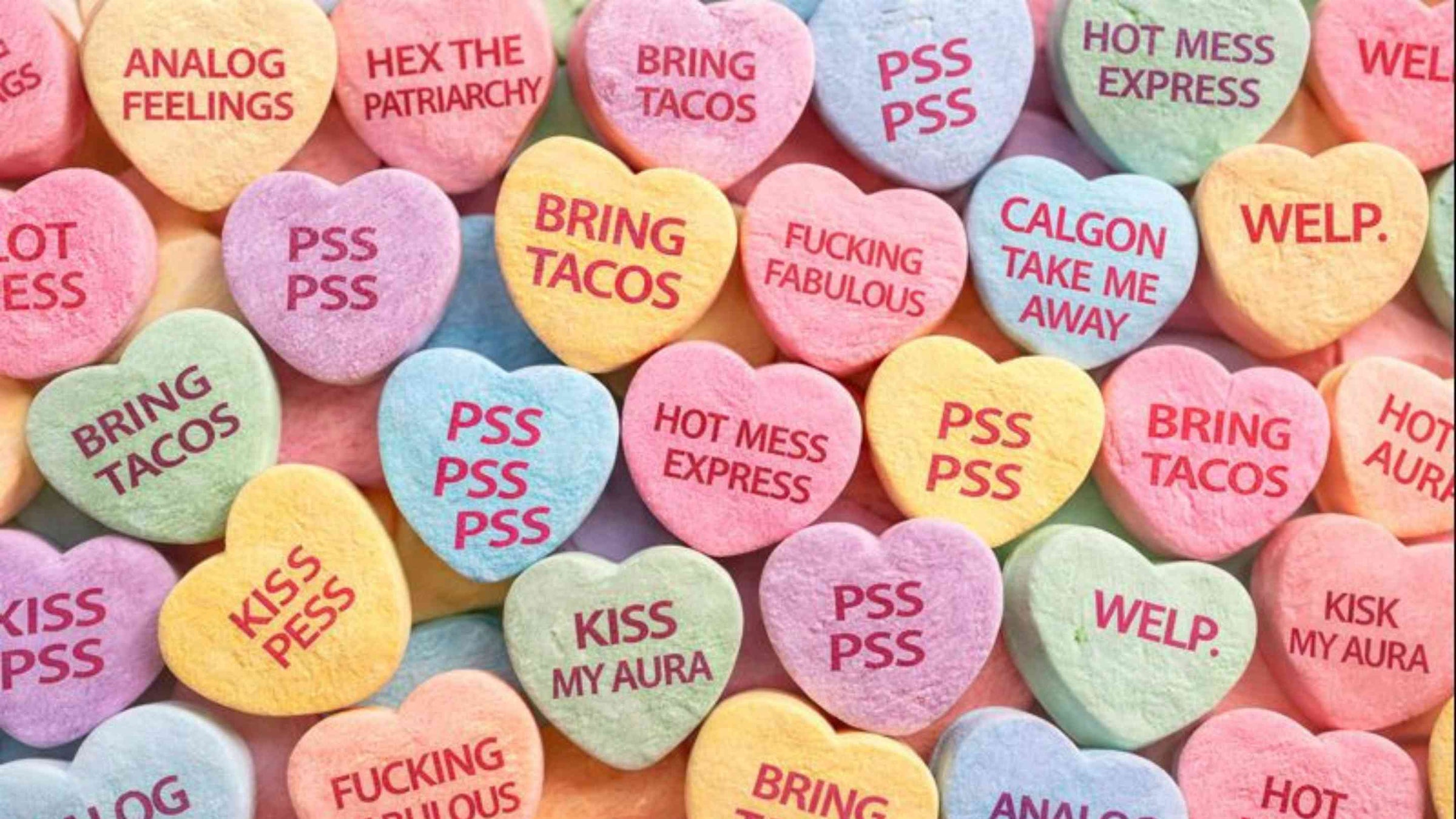Each design balances nostalgia with wit, turning familiar candy-heart shapes into tiny declarations of truth. From irreverent humor to soft-spoken solidarity, these cards are meant to be felt as much as read. They work as Valentine’s cards, friendship notes, break-up blessings, inside jokes, or quiet reminders that someone out there gets it. They’re playful, pointed, and just sentimental enough to keep.
